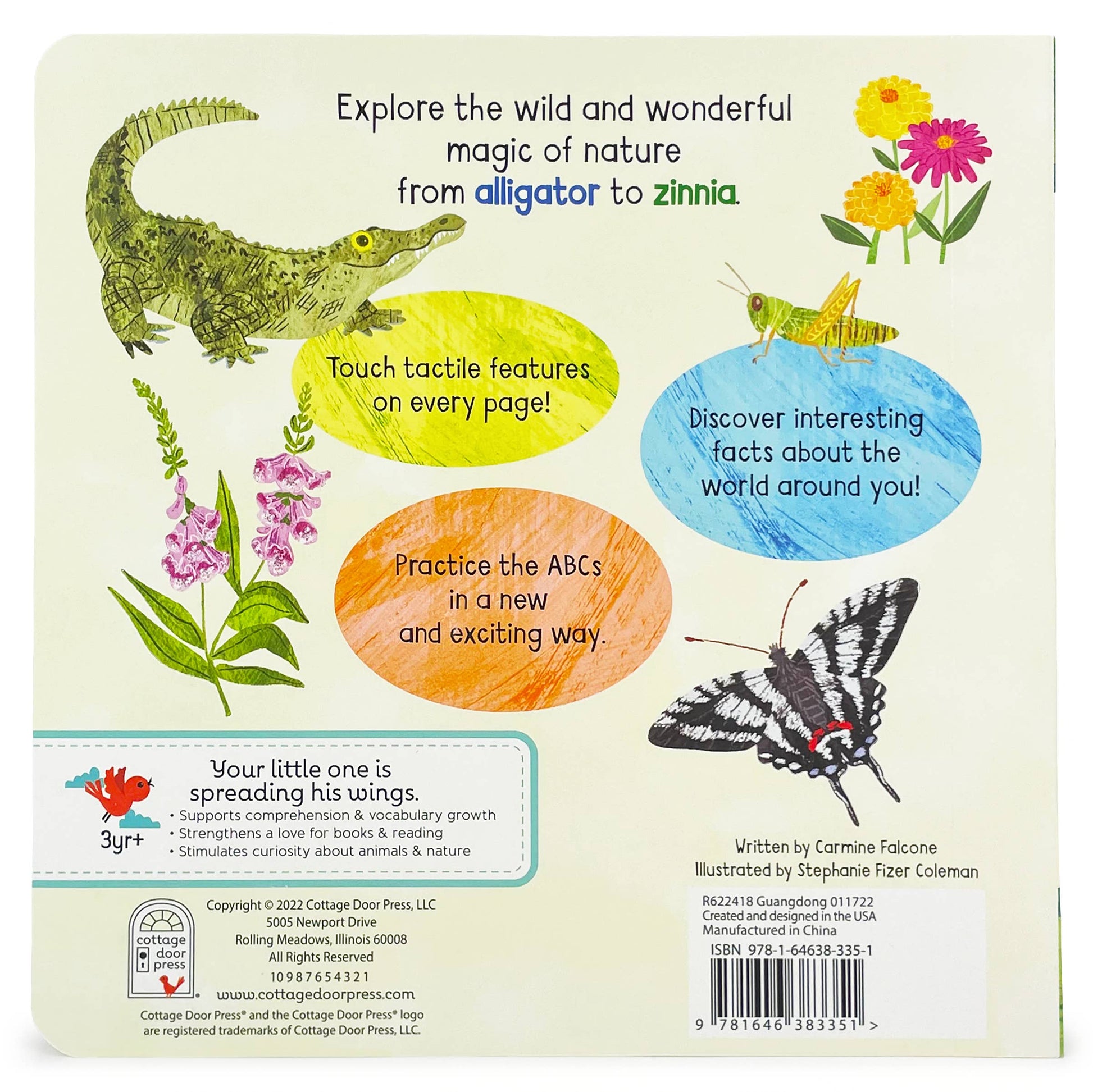 Explore the wild and wonderful magic of nature from alligators to zinnia! Children are curious little sponges. Help them absorb the concept of the alphabet by finding ABCs in the wild. The egret, ermine, elk, and eagle all start with "E"! Did you know loons start with an "L" and their hatchlings sometimes ride on a parent's back to warm up from the chilly water?